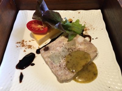 豚のパテは、濃厚でしっかりとした食べ応えがあり、中央にごろっと入った梨が爽やかさを感じさせてくれます。
