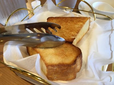こちらは毎朝焼いているという自家製のフォカッチャ(ライスも選べます)。卵・牛乳・バターを使用していないそうで、サクサクした軽い食感で、料理によく合います。おかわりも自由というのが素敵です。