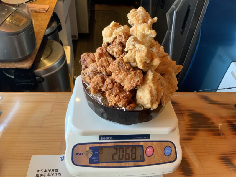 唐揚げが1kg乗り、合計2kg。これで税込1500円です。ですが、私は15分以内に食べきるので無料です。