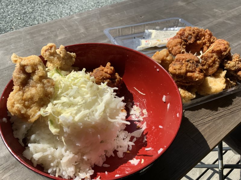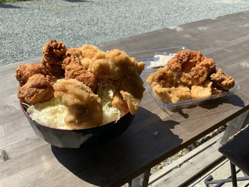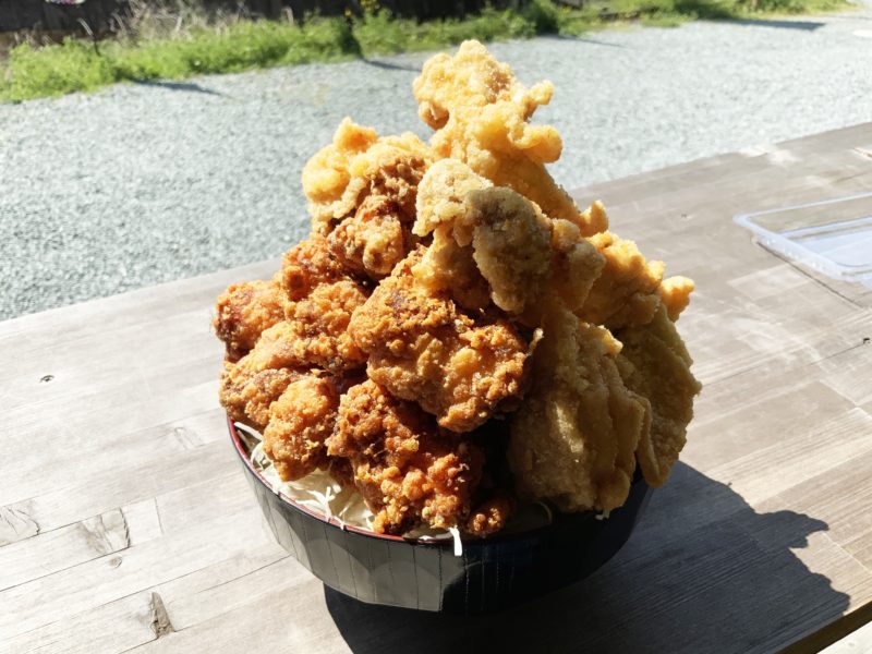 乗ってる唐揚げは醤油と塩。どうあがいてもすぐにお米にたどり着ける気がしません。