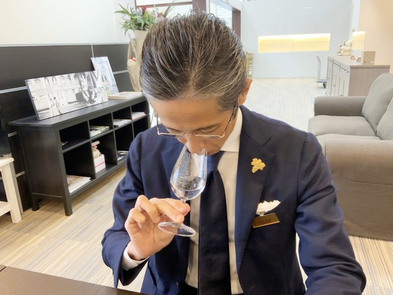 日本ソムリエ協会熊本支部長 中川浩次さん(ホテル熊本テルサ)に飲み比べてもらいました。