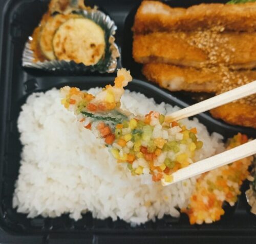 この日は唐揚げ、味噌豚、てりたま丼。