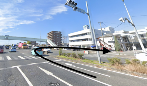 御幸笛田1丁目交差点をキュッと左斜め前に
