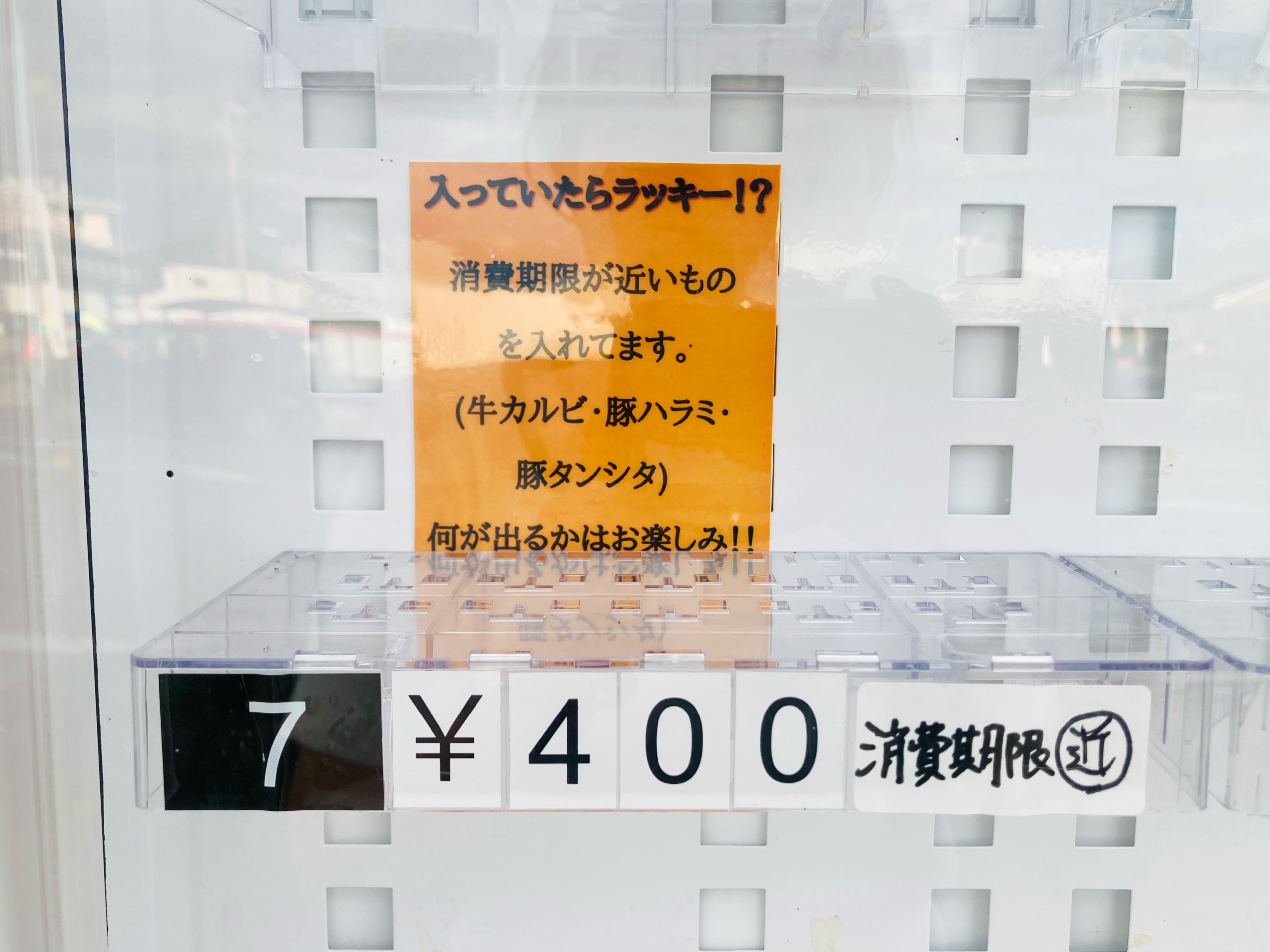 焼肉屋さんの自動販売機は、予想を終えた満足感がありました。