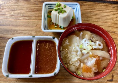 だご汁と小鉢がついてきますよ。