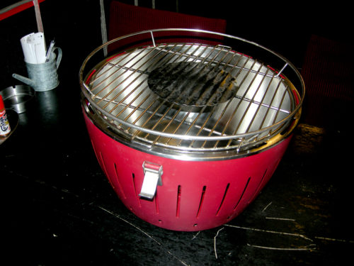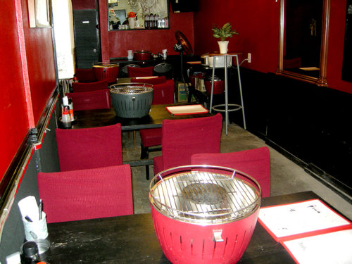 各テーブルには炭焼き用の七輪を配置。炭火でじっくりと焼いた焼肉を楽しむことができます。