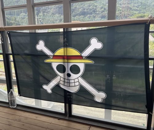 サニー号トレインの出向を祝い、今日だけは立野駅構内もONE PIECE尽くし!