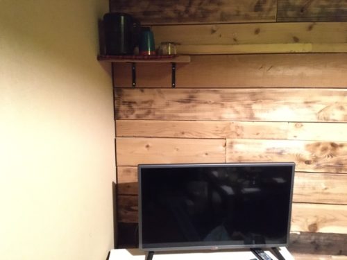 さらに感動したのが、お冷やカトラリー類は、テレビの上の高い棚の上に置いてくれるという配慮!子どもがいると、テーブルの上の物を触ったり、お水をこぼしたりするのはアルアルですが、これなら安心!