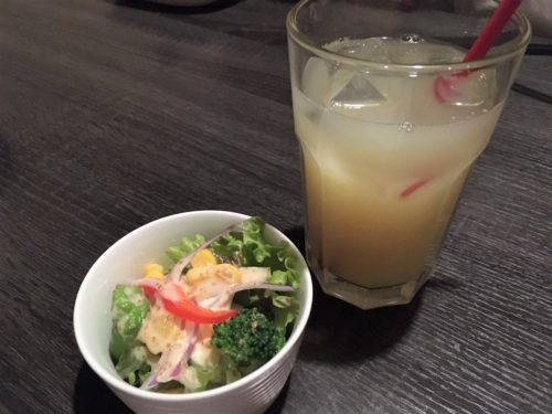 ドリンクも、100%のフルーツジュースや有機コーヒー、ジンジャーエールなど種類豊富。さらにサラダもついてきて、ヘルシーなランチに大満足です。