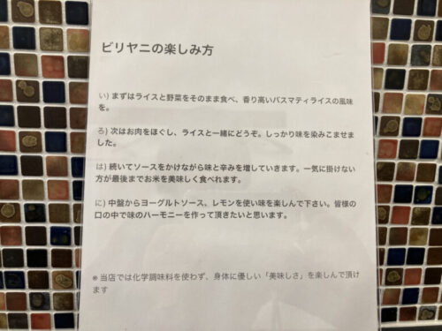 その間に店内に置いてあるパンフレットで「ビリヤニの食べ方」を予習。