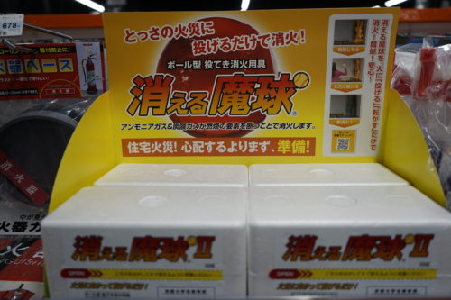 まずはこちらの消える魔球。とっさの火災に投げるだけで消火できる優れものです。