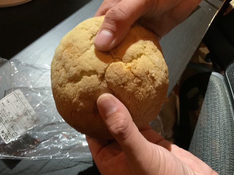 サイズ感も普通のメロンパンより一回り大きいくらいで1個食べたら大満足。