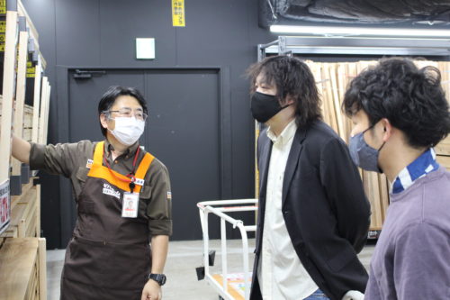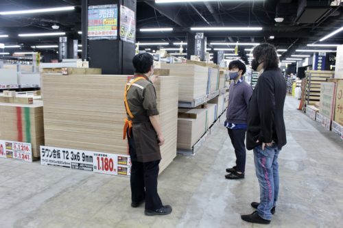 ただ、木材も種類が多くて迷っているところです。…よければ、良い感じの板を一緒に探してくれませんか?