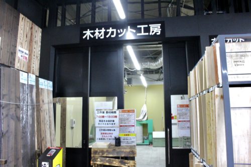 店内にあるこちらの「木材カット工房」で希望の長さへカットできますので!