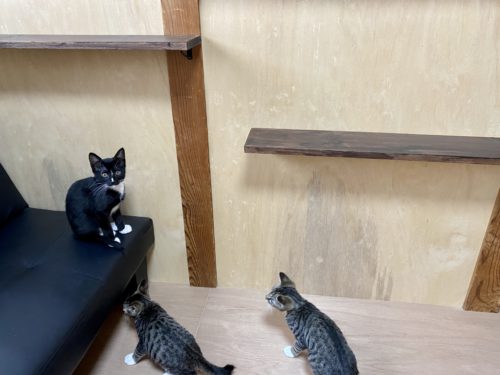 3匹の猫たちへお披露目
