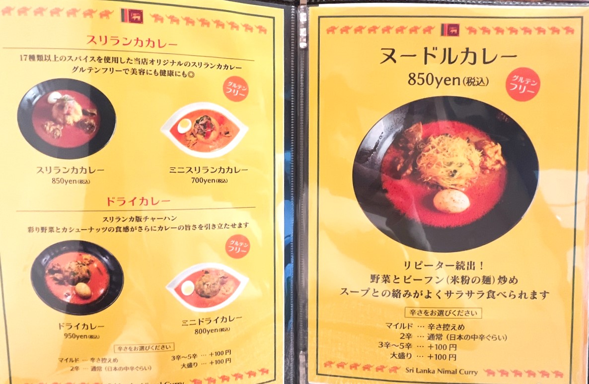 カレーのメニューは4種類。定番のスリランカカレーに、ライスが炒飯になったドライカレー、ビーフンで頂くヌードルカレー。