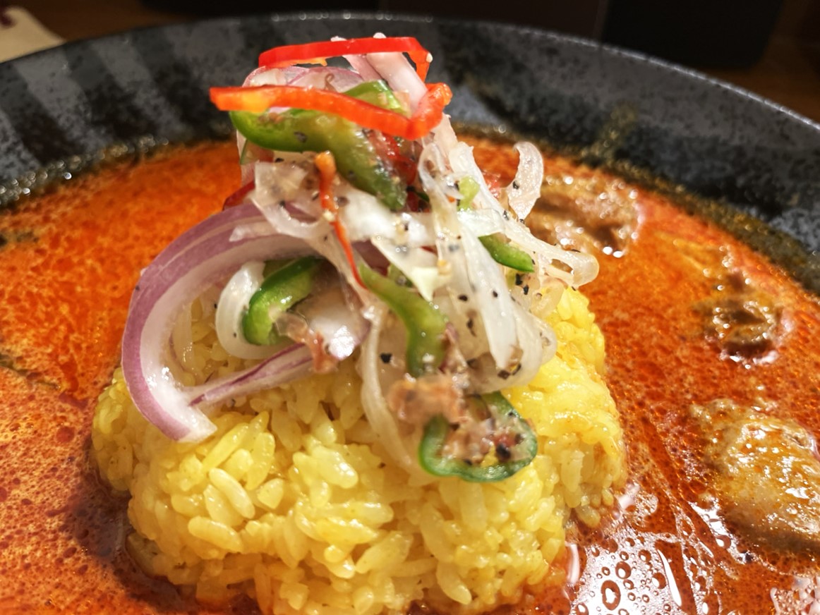 ルーはサラサラ系(私は辛さUPなので少しとろみあり)。ベースはココナッツのマイルドなカレーで、そこに17種類を越えるスパイスが入ることで、とても深い味わいになっています。辛いだけじゃない、病みつきになってしまうカレーです。