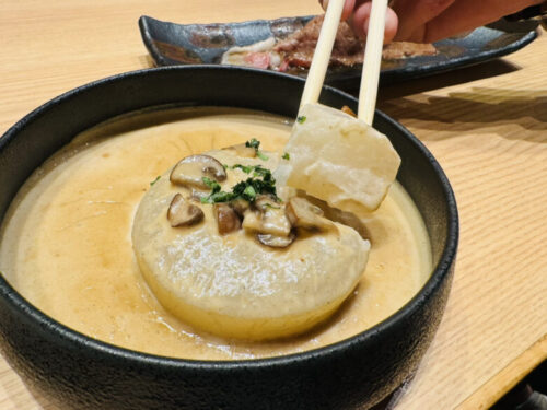 瑞々しい大根とソースの相性が最高すぎて、おかわりしたくなる衝動にかられます。
