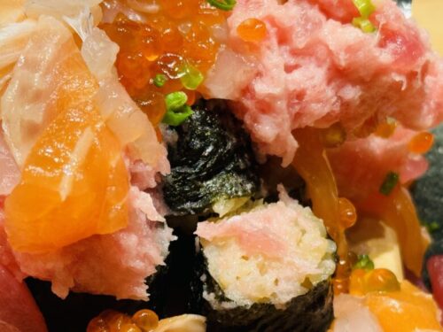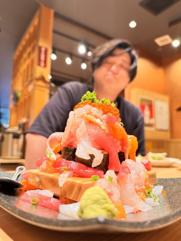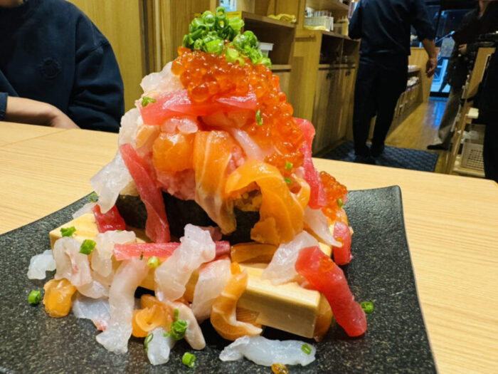 サーモンやマグロ、イクラが溢れちゃってまさになだれが起きてました。