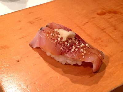 まず最初は「鯛の炙り鮨」。スタートからこれは美味い!