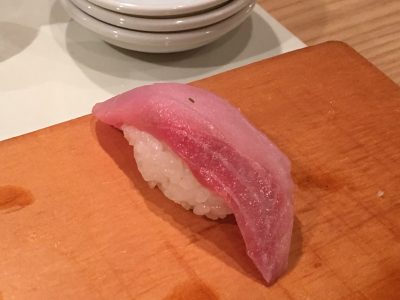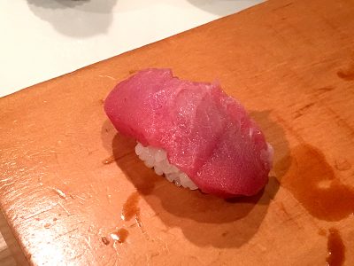 そして、最後に「カツオ」が出てきました。一瞬中トロと思えるような綺麗な身をしています。味も最高!