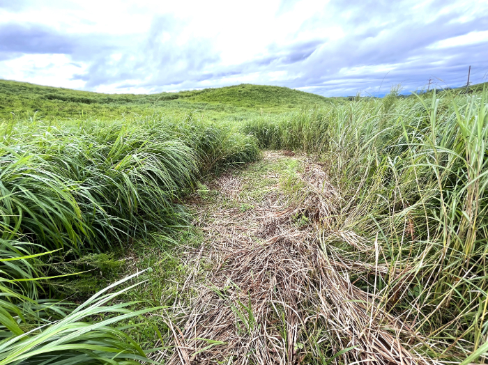 ミルクロード沿いにある自然の迷路で、地域の方々がすすきの草原を刈って作られます。
