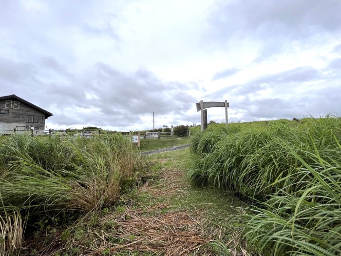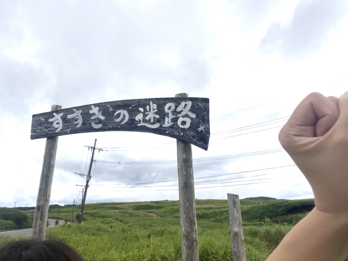 このかぶと岩展望所駐車場の目の前に「すすきの迷路」を発見。早速チャレンジ!といきたいところですが、ご注意ください。