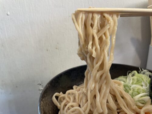 冷や盛りと熱盛りが選べて、グァシグァシワシワシ系のコシが効いたモチモチ麺でかなり食べ応えがありました。