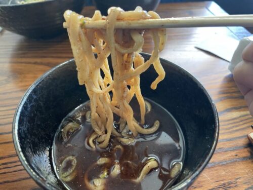 さらさらさっぱりとしたつけ汁は、食べ応えのある麺が次から次へと食欲を掻き立てます。