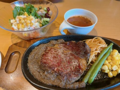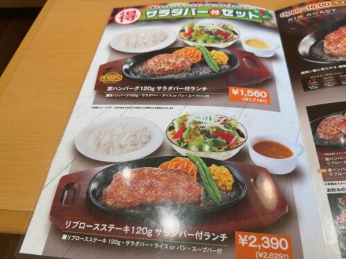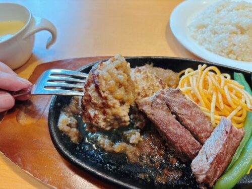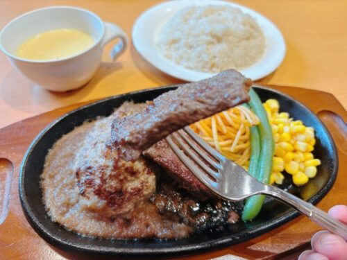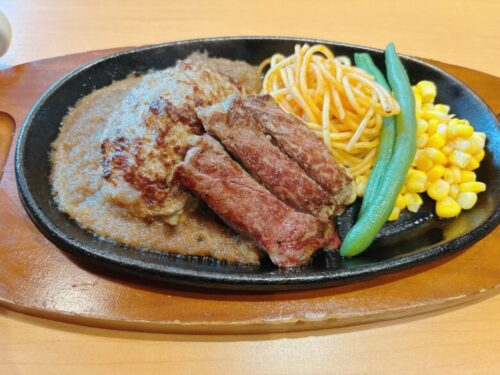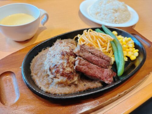 こちらのメニューはステーキもハンバーグも両方食べれられます!