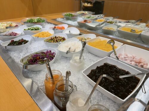 ランチタイムはサラダバーやスープバーが無料で付いてくるお得なセットもあります。