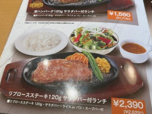 「リブロースステーキ120gサラダバー付ランチ(ミディアム・宮のたれ)