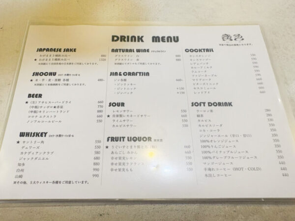 フードは1品1品が少ないのでひとり飲みでもいくつも食べられます。お通し代もないというのだからさらに楽しめますよね。