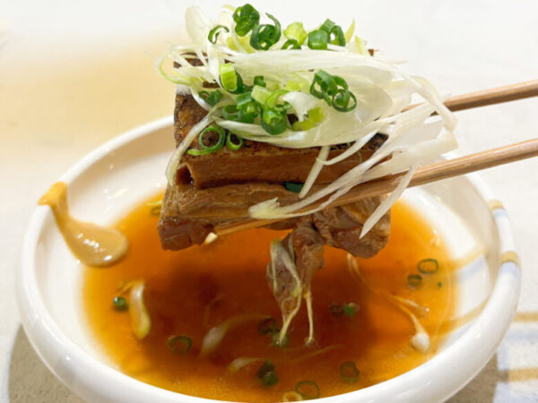ぎゅっと旨みが詰まった角煮。出汁の味付けが柔らかく、大きめサイズでも一人で平気にいただけちゃいます。
