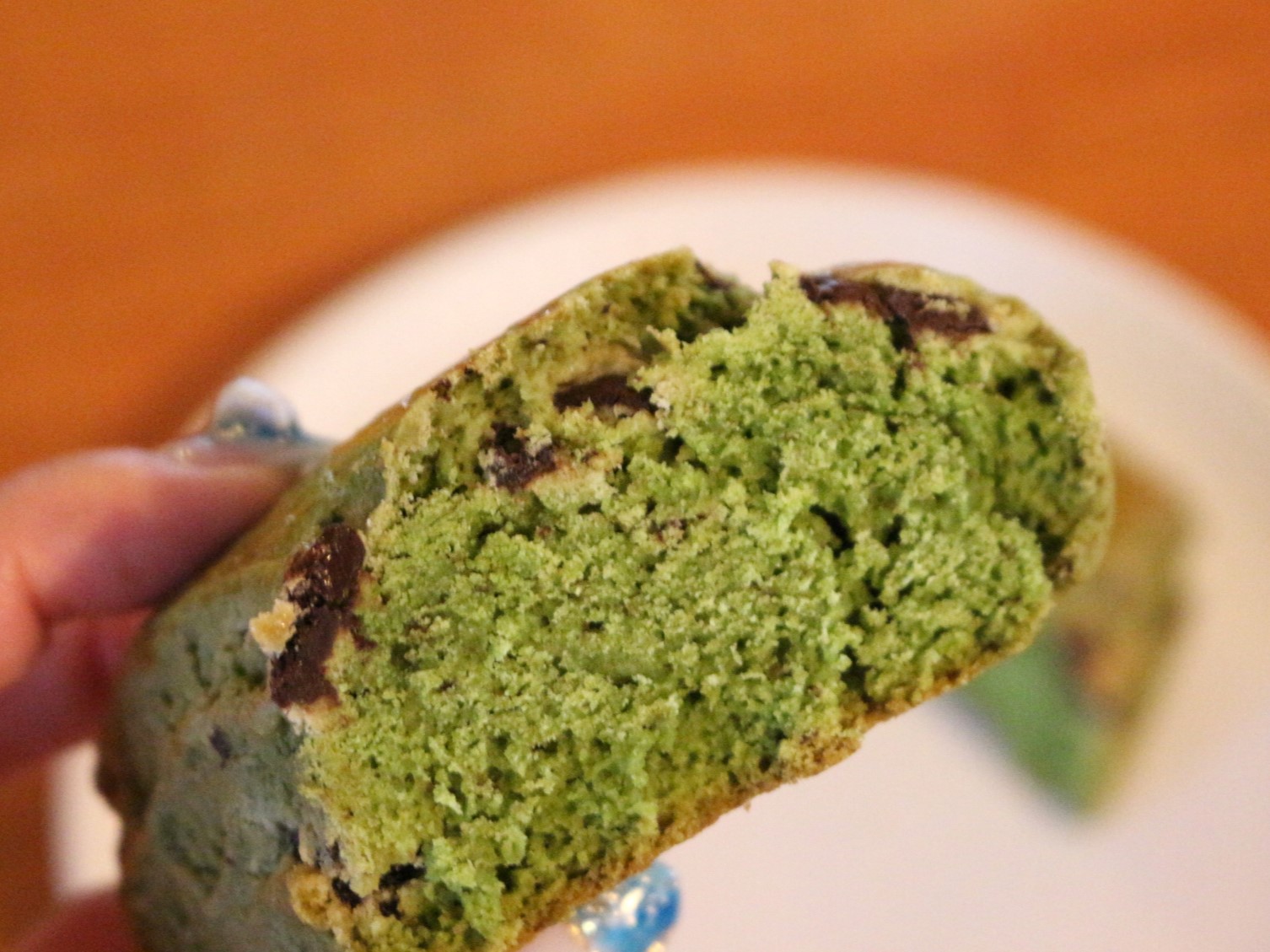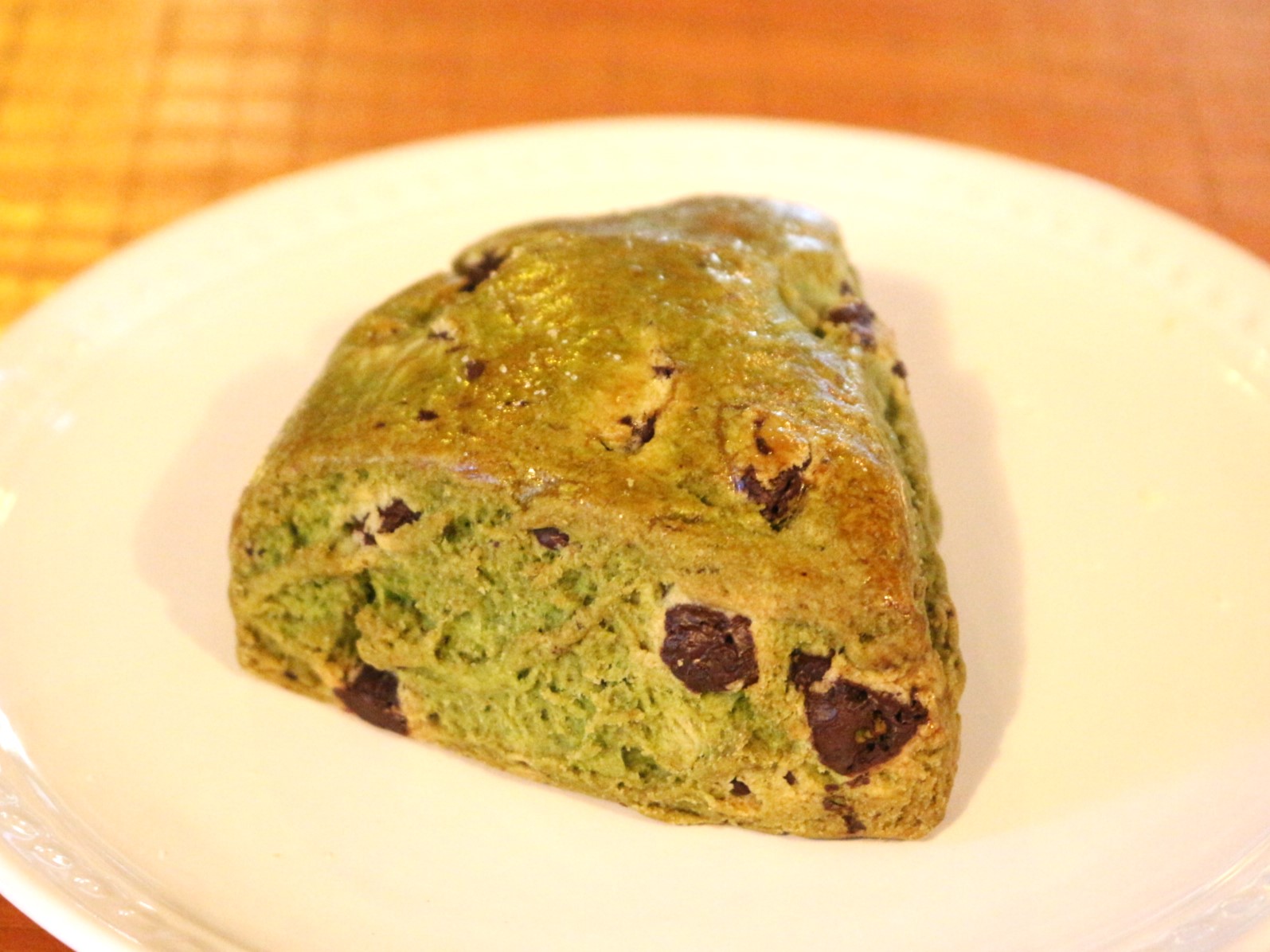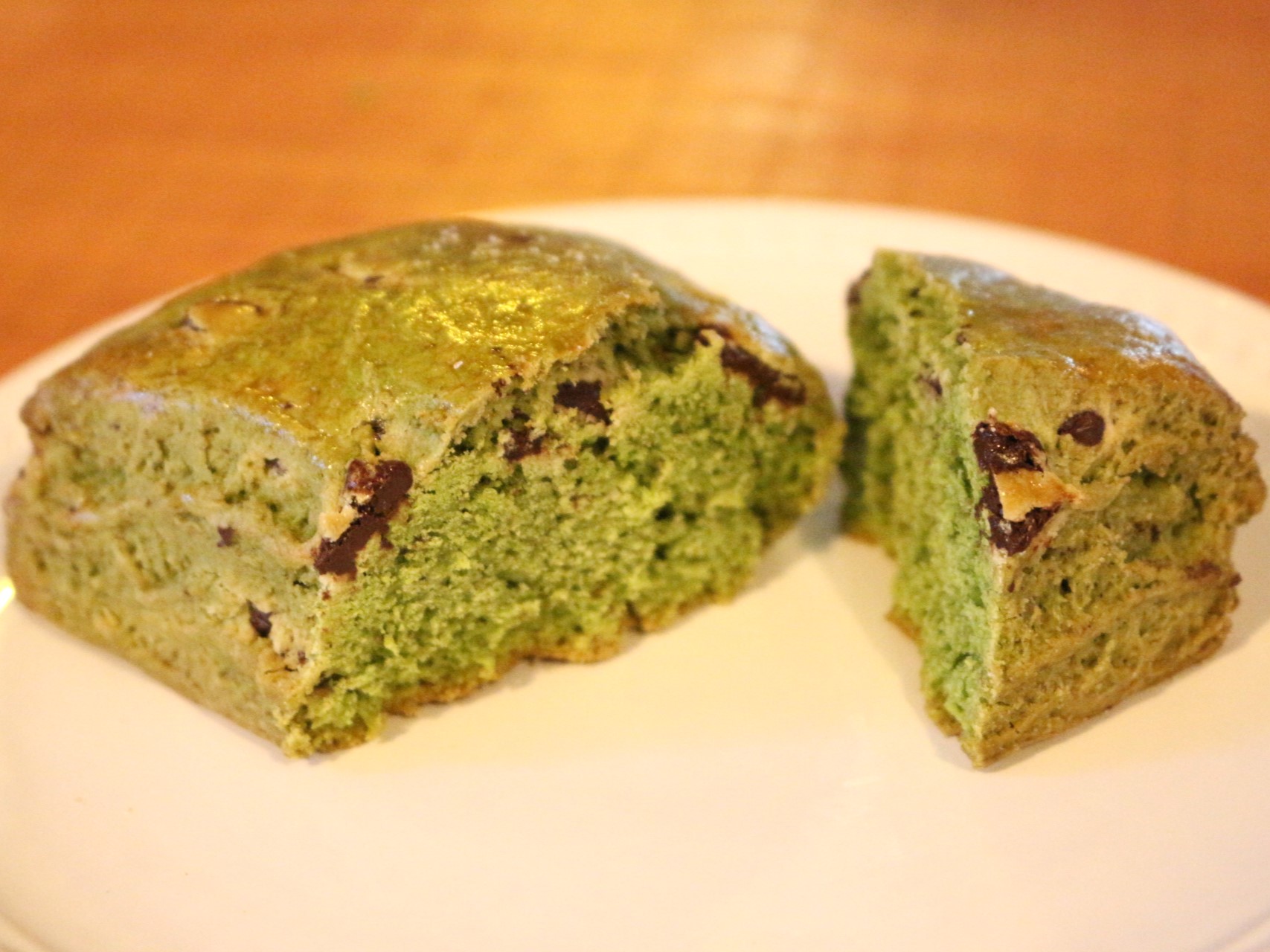 次は、八女抹茶チョコチップ。名前の通り、八女の抹茶をふんだんに使われていて、綺麗な緑色のスコーンです。ゴロゴロチョコチップが入っているのが分かります。