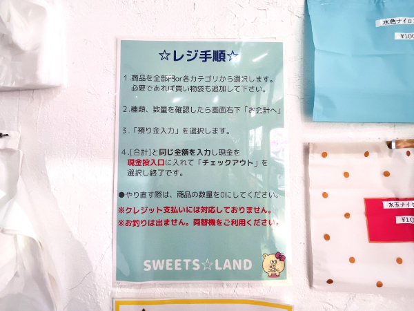 レジの使い方もしっかり書いてあるので、初めて利用する方も迷いません。