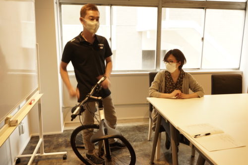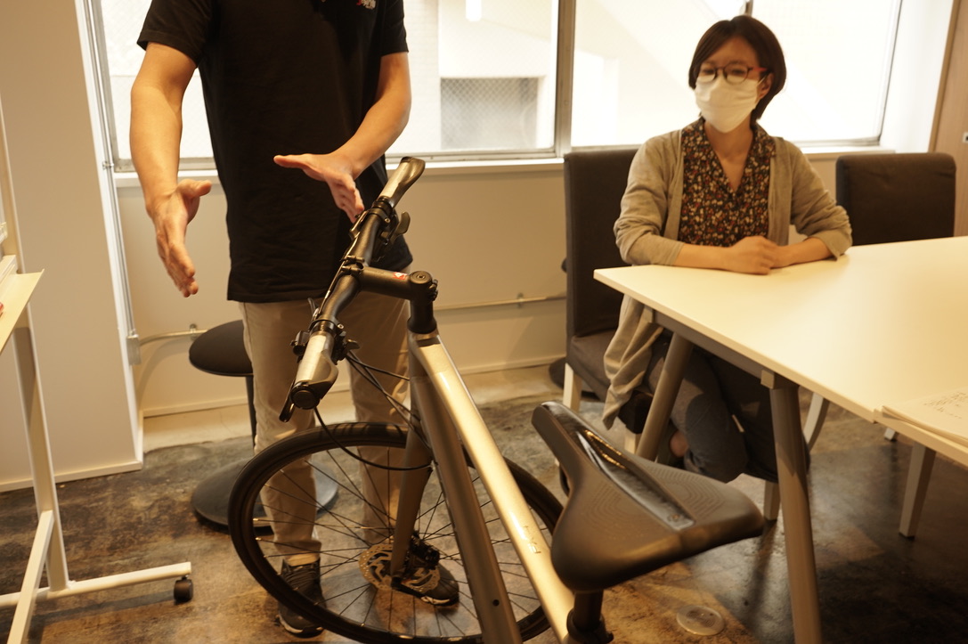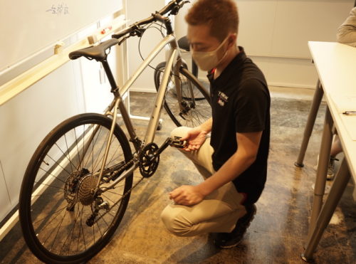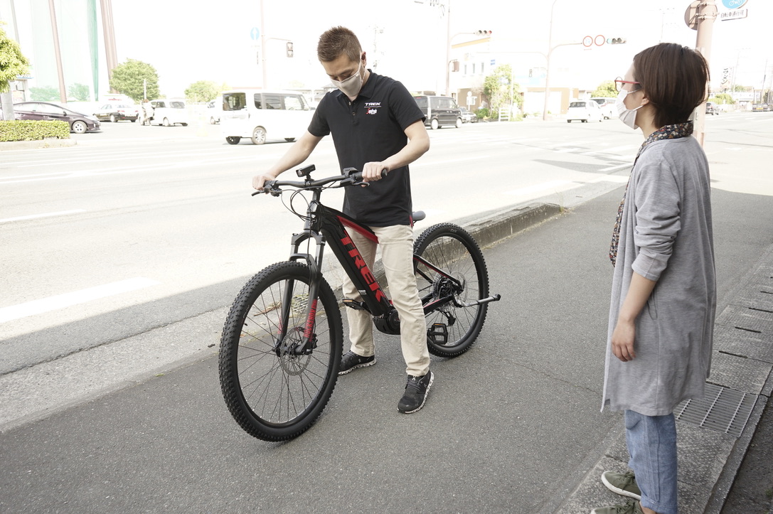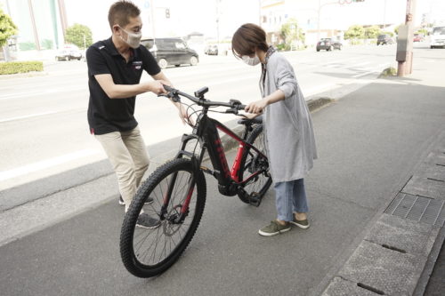 初心者に試乗してもらい、「良い!」と思って買ってもらいます。徳田に電動クロスバイクの乗り方や、性能について詳しく教えていただきました。