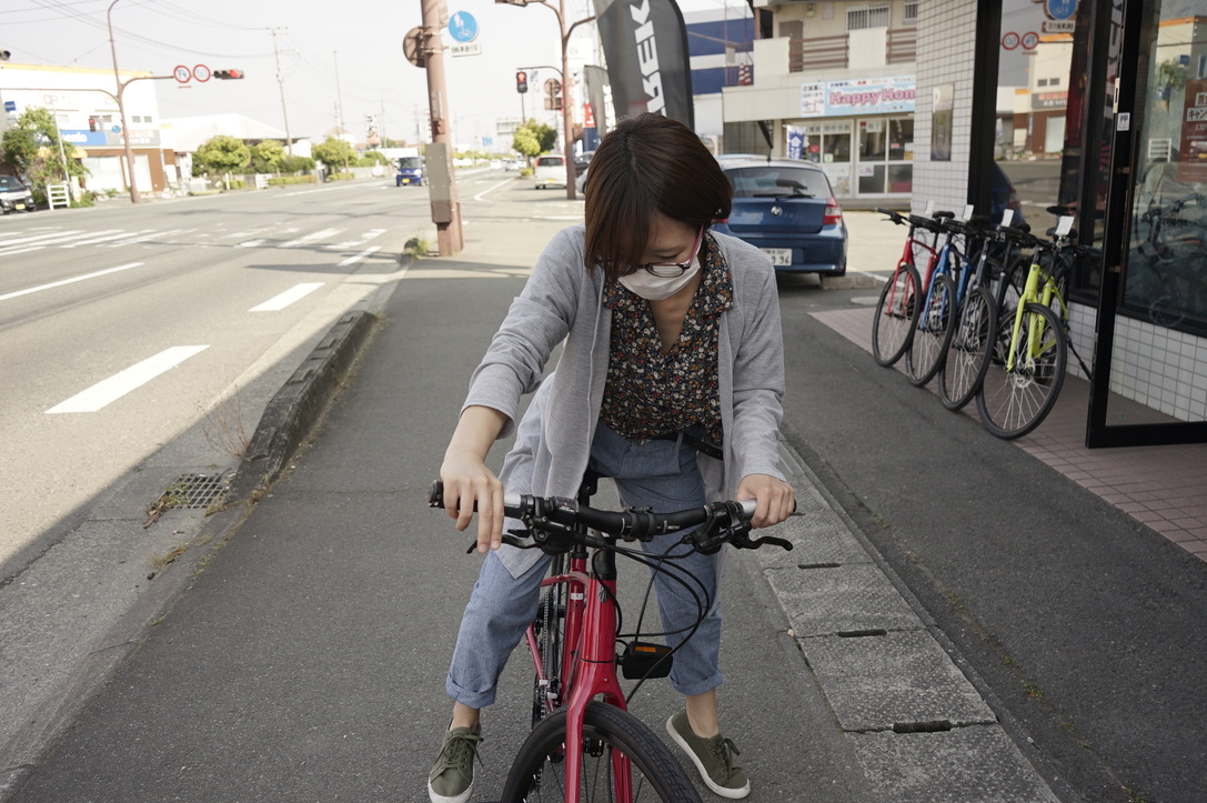 奥村店長ここで徳田さんに駄目押しのクロスバイクに試乗してもらいましょう(ふふふ)