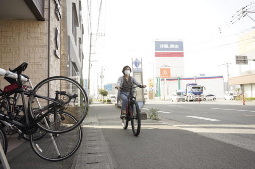クロスバイクなら、女性でもサッと…