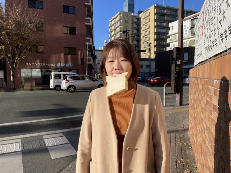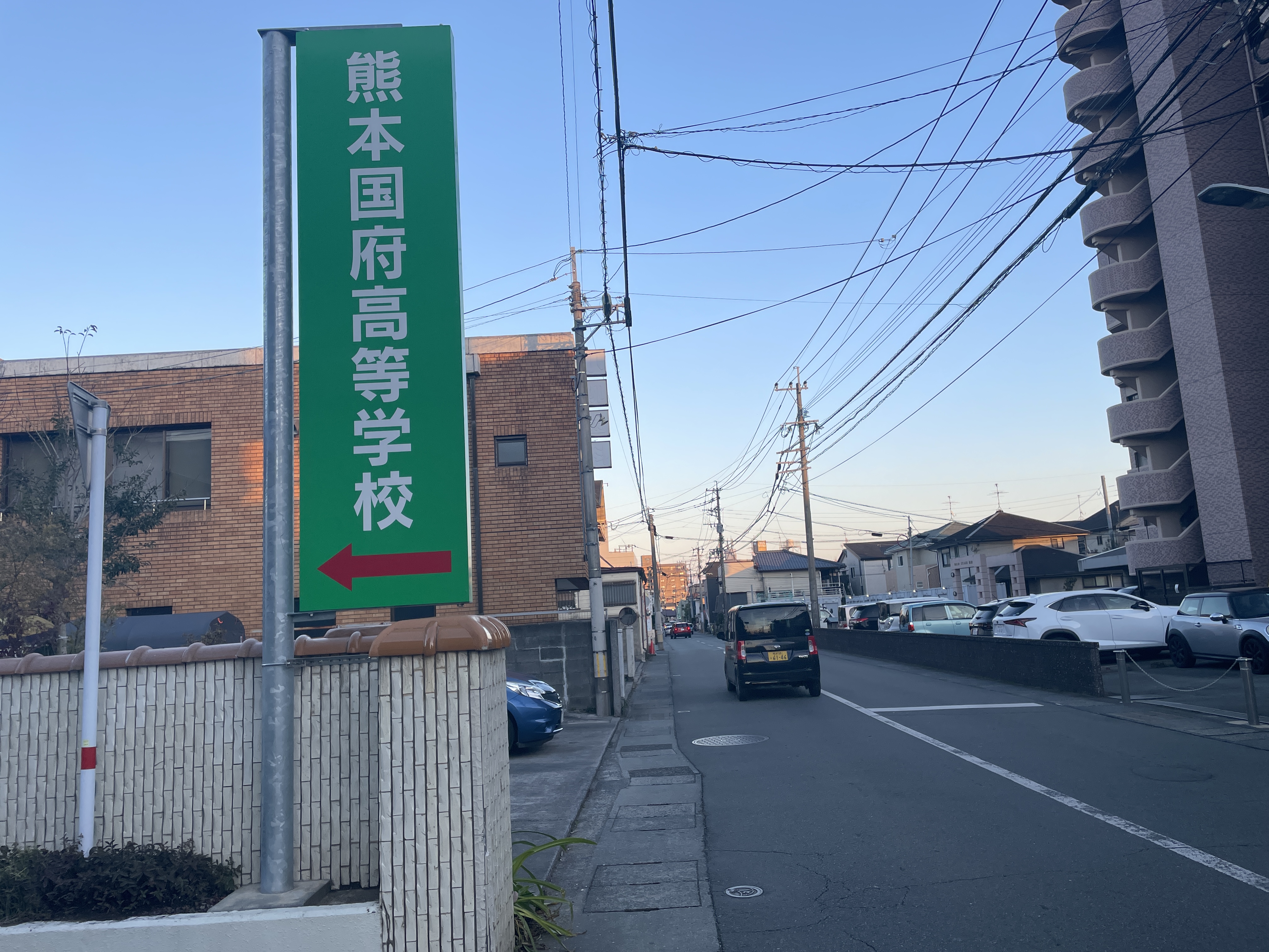 熊本市の高校付近で90度の角がある場所を探し、食パンくわえて走ってみたいと思います。