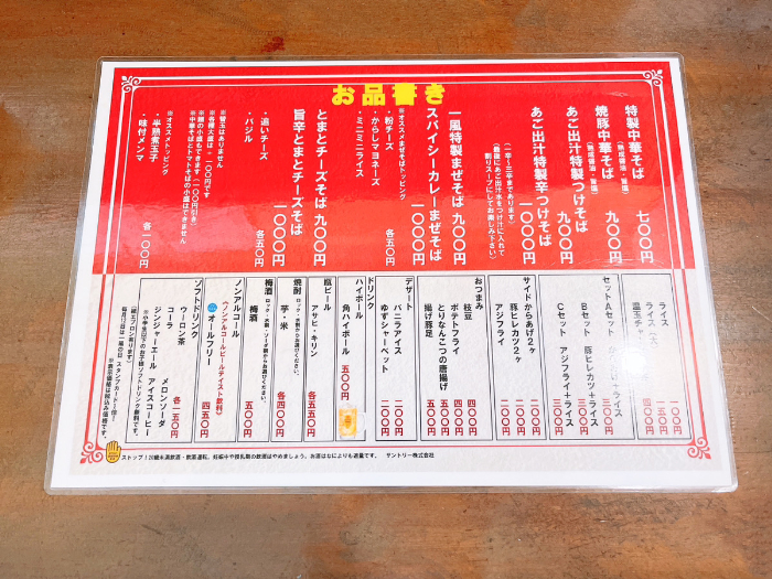 こちらがお店のメニュー。