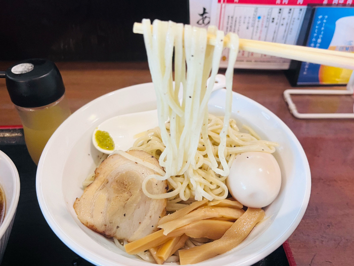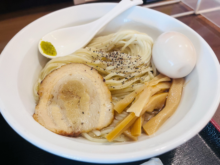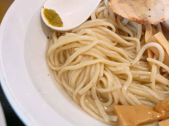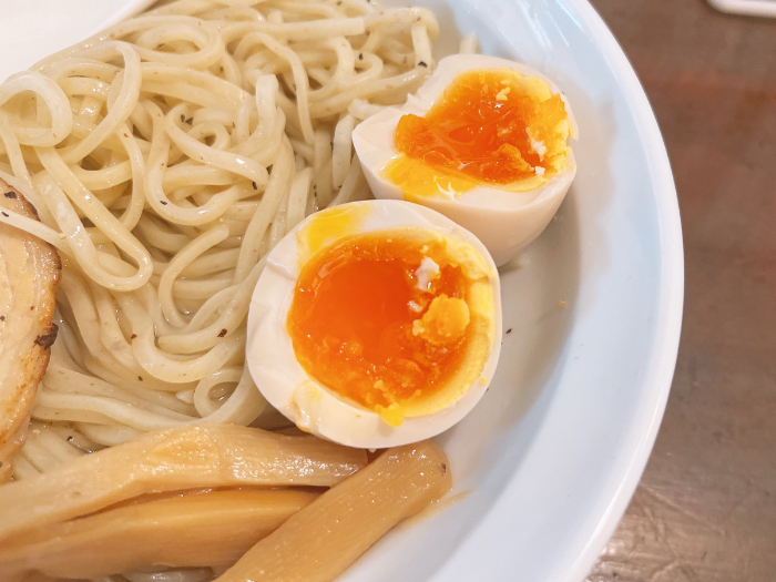 トッピングも丁寧に作られていて、ずっと口の中が幸せでした。特に感動したのは、つけ汁に入っていた豚の軟骨。ホロホロのお肉にトロトロの軟骨。これだけでもかなり満足してしまいました。