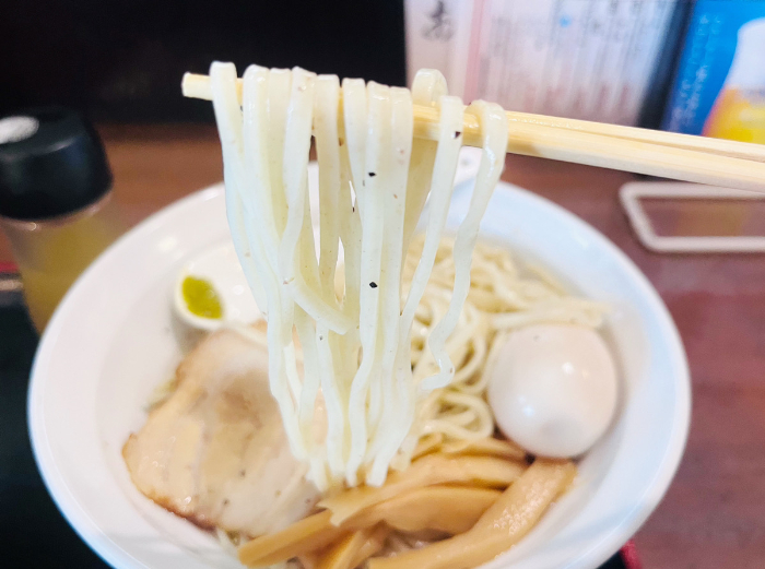 まず、この麺が美しい…。麺がキレイに畳まれて丼の中に収まっています。