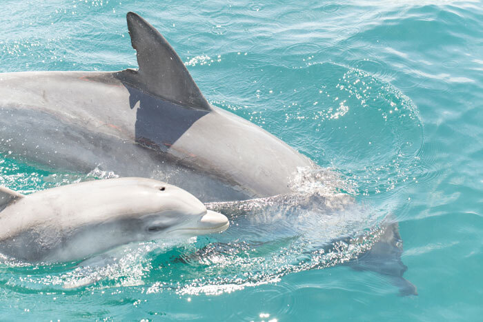 五和町二江の沖合いには、約200頭以上のハンドウイルカが生息しているそう。1年通して野生のイルカを見ることができます。