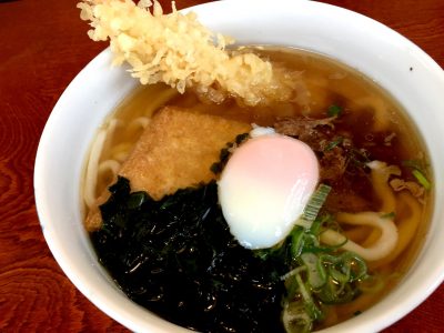 うどんは、讃岐うどんのようなコシがあるタイプではなく、平たい柔らか麺が特徴です。手打ちの麺も良くとれたお汁も優しい味です。