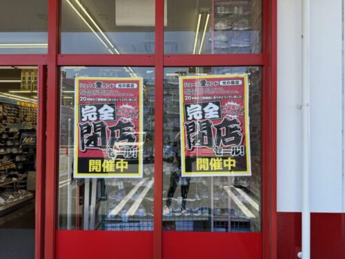 熊本北郵便局の向かいにあります、シューズ愛ランド 熊本光の森店完全閉店するとの事でした。