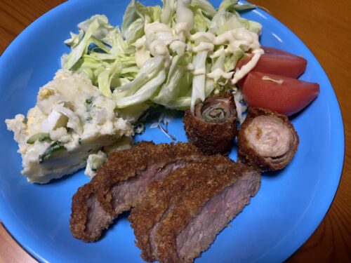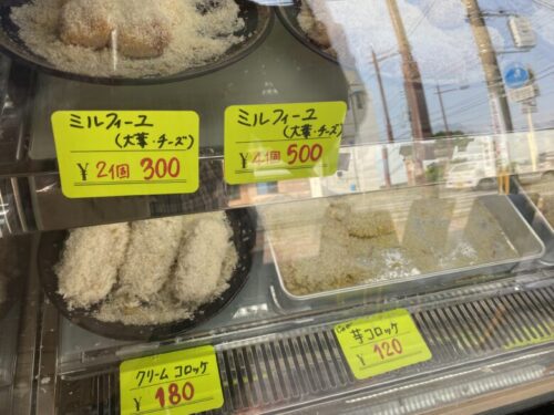 今回は牛カツ食べたさで奮発しましたが、これをコロッケ(1個120円。クリームコロッケは1個180円)や蓮根のはさみ揚げ(150円)にするともっとお得になりますね!今度は揚げたてのコロッケを沢山食べたい。