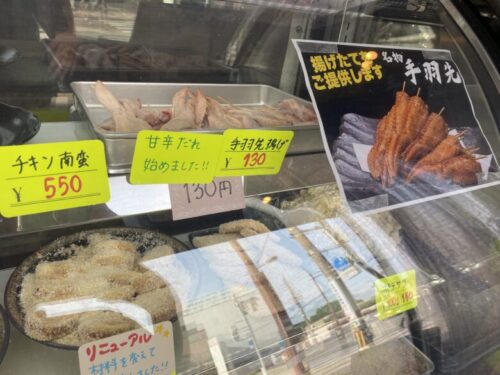 唐揚げ、ミルフィーユカツ、エビフライ、チキン南蛮、手羽先にコロッケ、メンチカツ…様々な揚げ物が注文を受けて揚げられるのを待っています。