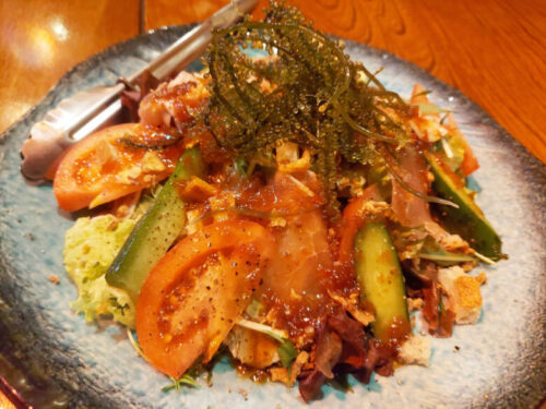 海ぶどう単品でのメニューもありますが、海ぶどうを使ったサラダも。