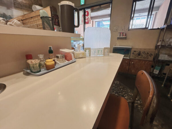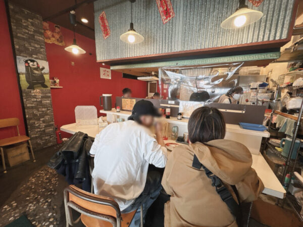 店内には、厨房を取り囲むカウンター席のみ。赤い壁がラーメン屋さん!という雰囲気を醸し出しています。